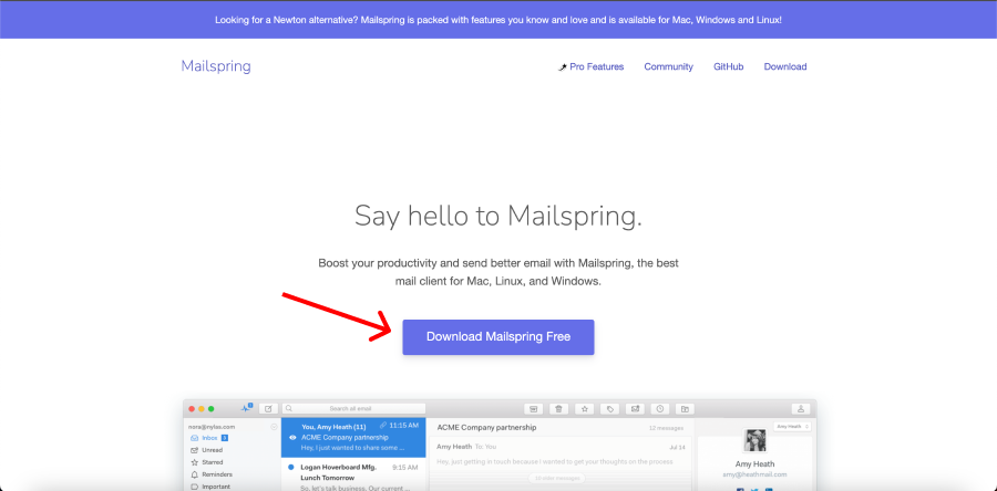 **#1** Head over to <https://www.getmailspring.com/> and download MailSpring.&#x20;