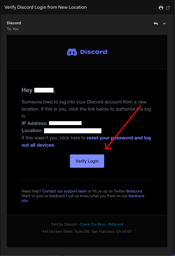 **#6** Now you should be able to login the email. Go to the recent email 'Verify Discord Login from New Location' and click on 'Verify Login'.&#x20;